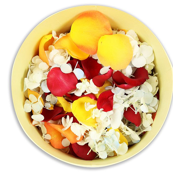 Delight in the beauty and uniqueness of our enchanting bouquet, featuring a vibrant mix of hydrangea, rose, and chrysanthemum petals. This elegant arrangement is perfect for enhancing any ceremony with its stunning colors and graceful design.