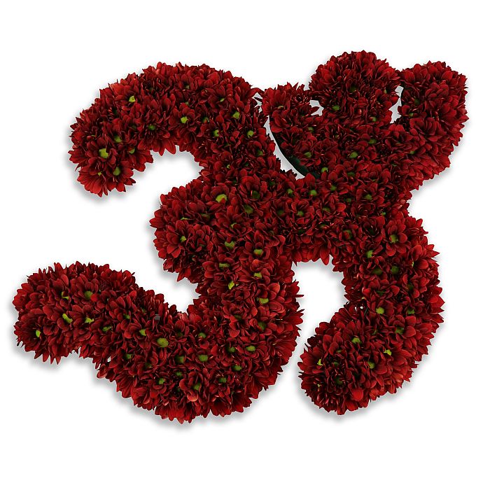 Express most sincere sympathies to the grieving family with this specially arranged aum tribute made up of fresh red chrysanthemums.